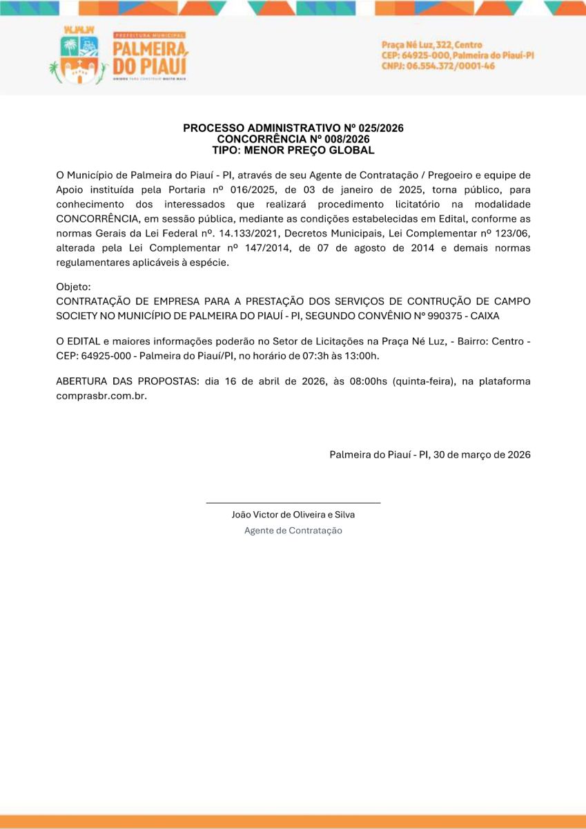 AVISO DE CONCORRÊNCIA N° 008/2026