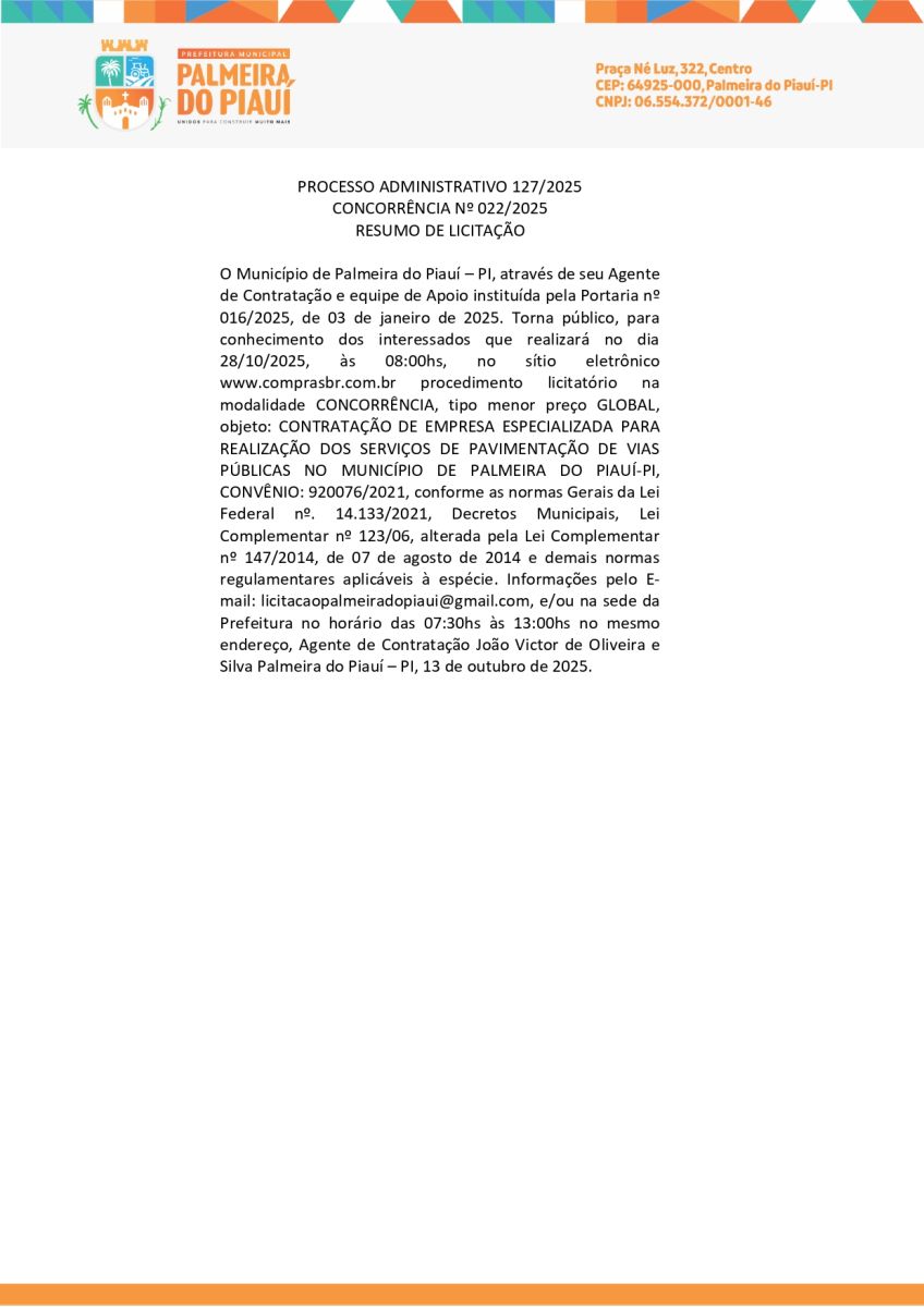 AVISO DE CONCORRÊNCIA Nº 022/2025
