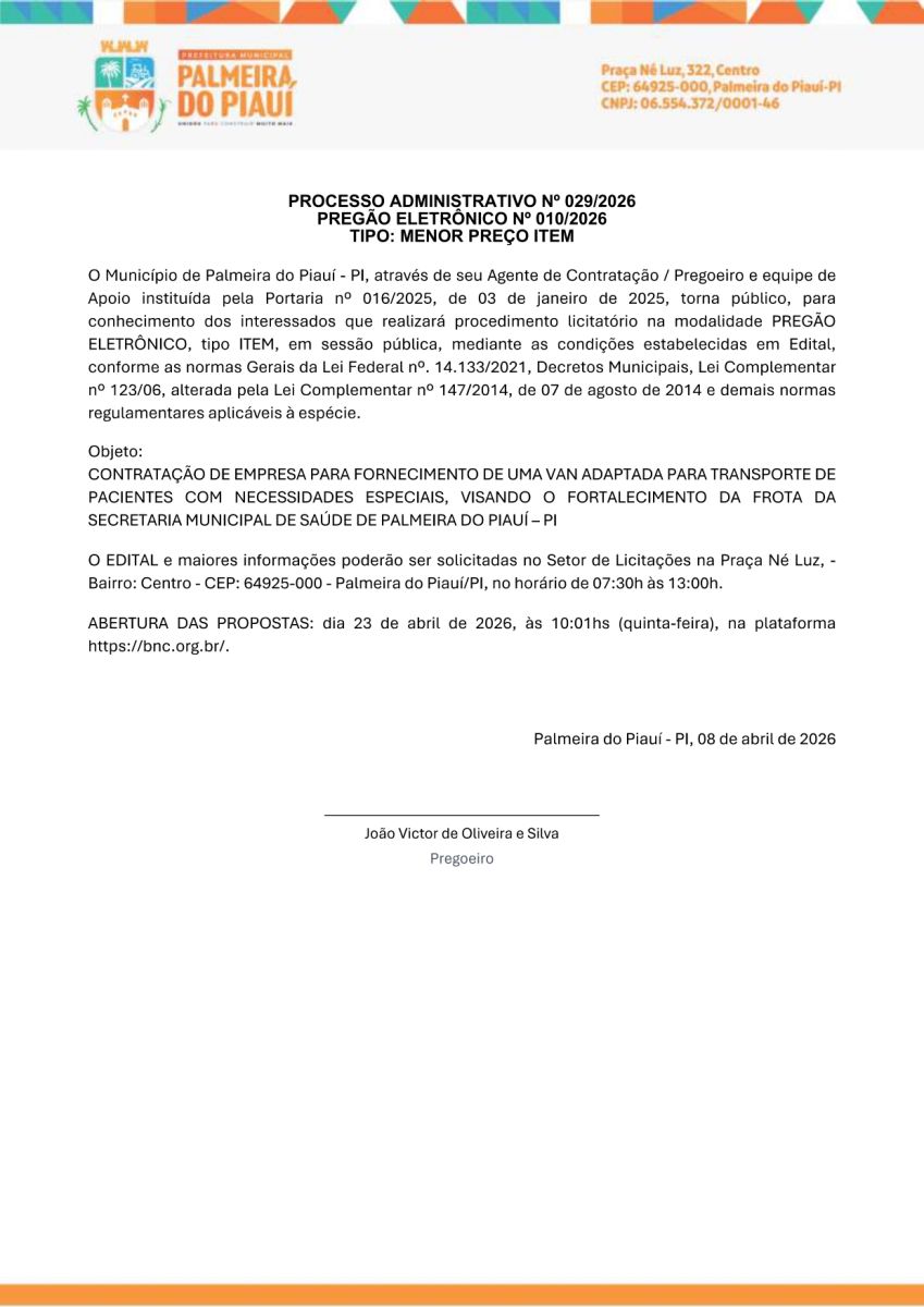AVISO DE PREGÃO ELETRÔNICO Nº 010/2026